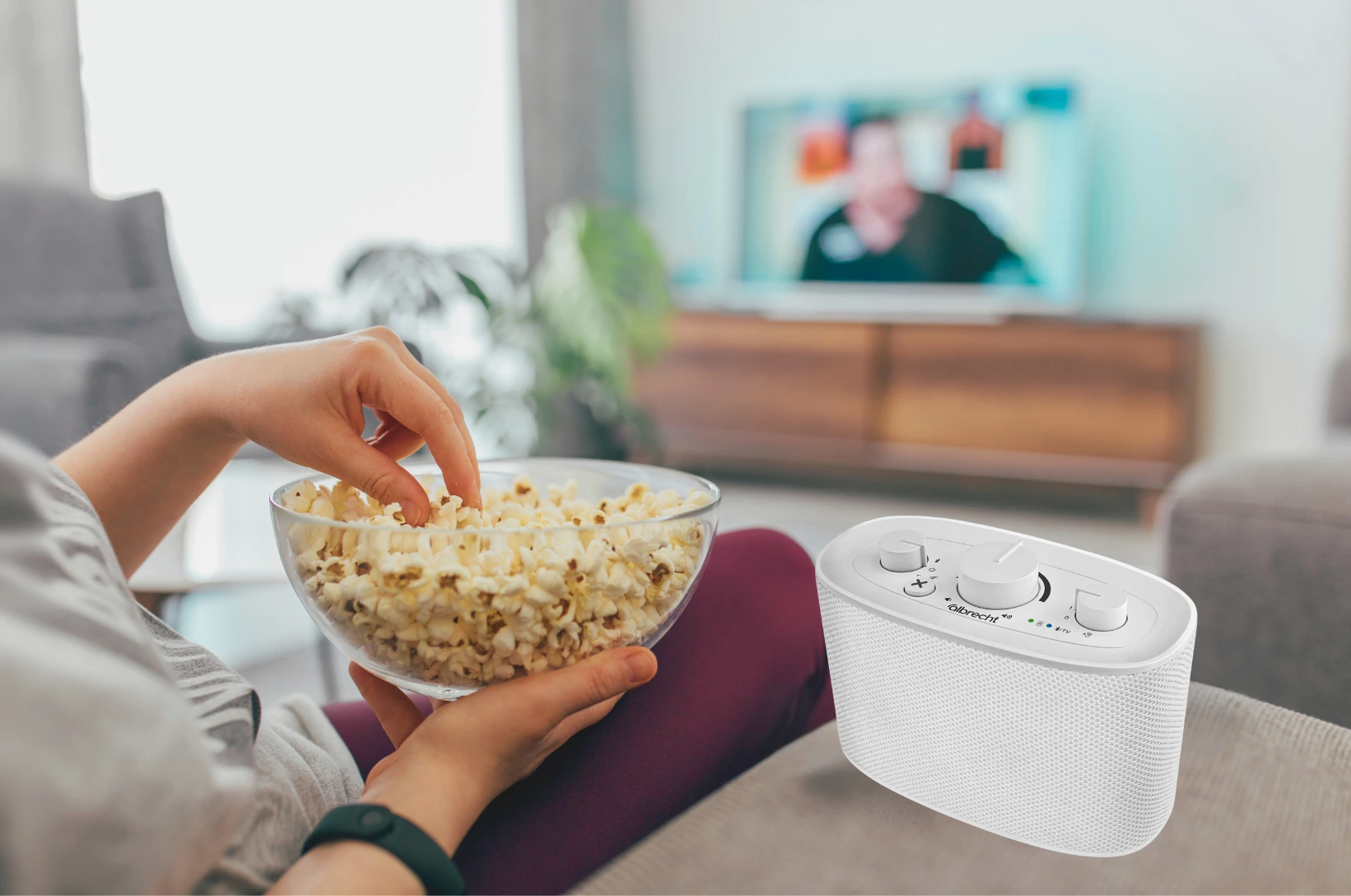Endlich den Fernseher verstehen! Der Albrecht KLARO bringt den Ton direkt zu Ihnen – für ein unvergleichlich klares Hörerlebnis, egal ob auf dem Sofa, am Esstisch oder im Garten. Dank innovativer Sprachoptimierung werden Dialoge verstärkt und störende Hintergrundgeräusche minimiert – perfekt für alle, die sich beim Fernsehen eine bessere Sprachverständlichkeit wünschen. Gleichzeitig können Sie den KLARO auch als tragbaren Lautsprecher verwenden und Ihre Lieblingsmusik in bester Klangqualität genießen.