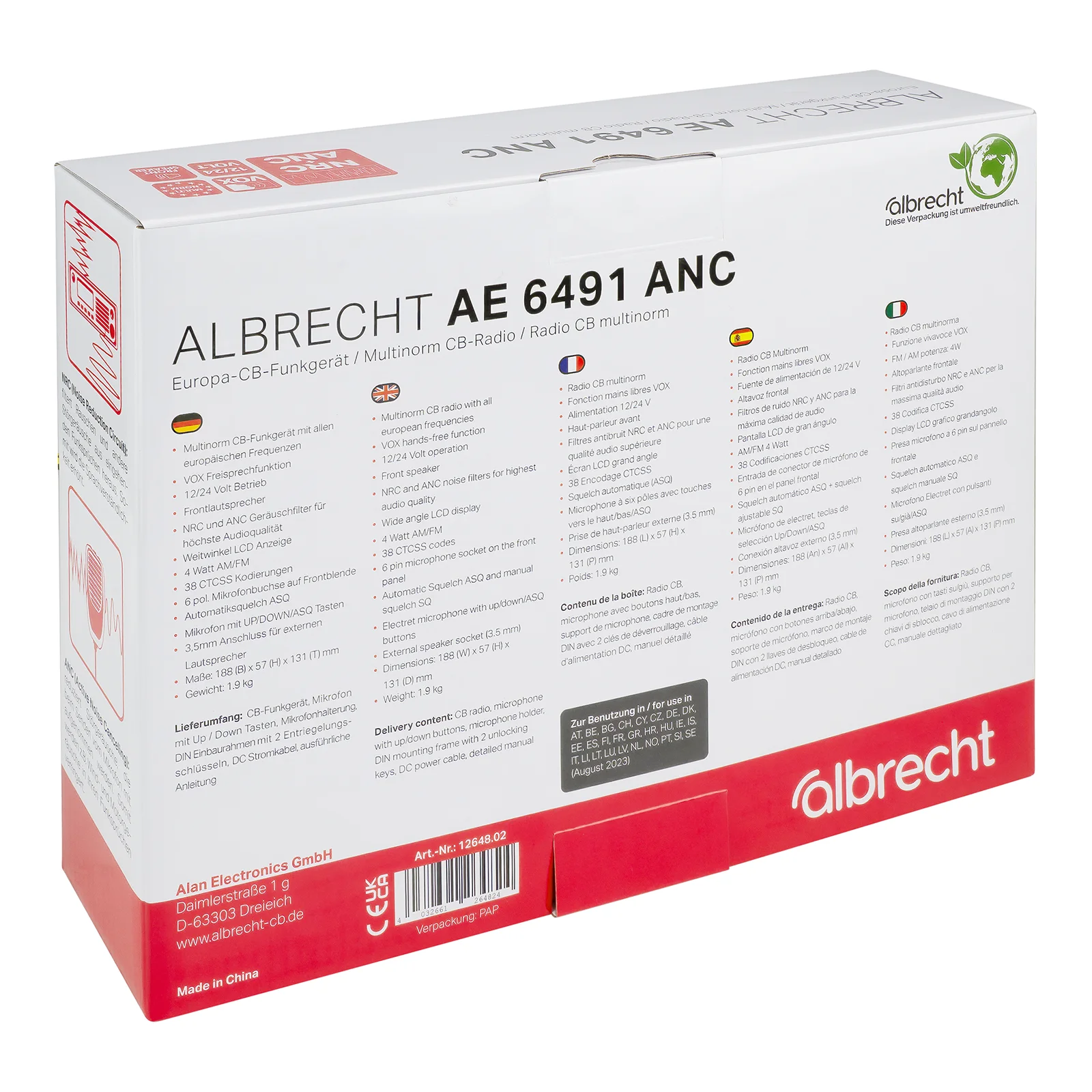 With the latest version of the Albrecht AE 6491, Albrecht brings a groundbreaking innovation to CB radio: the device is equipped with advanced ANC (Active Noise Cancelling) and NRC (Noise Reduction Circuit) noise filters, which enable unprecedented audio quality in the CB radio range.