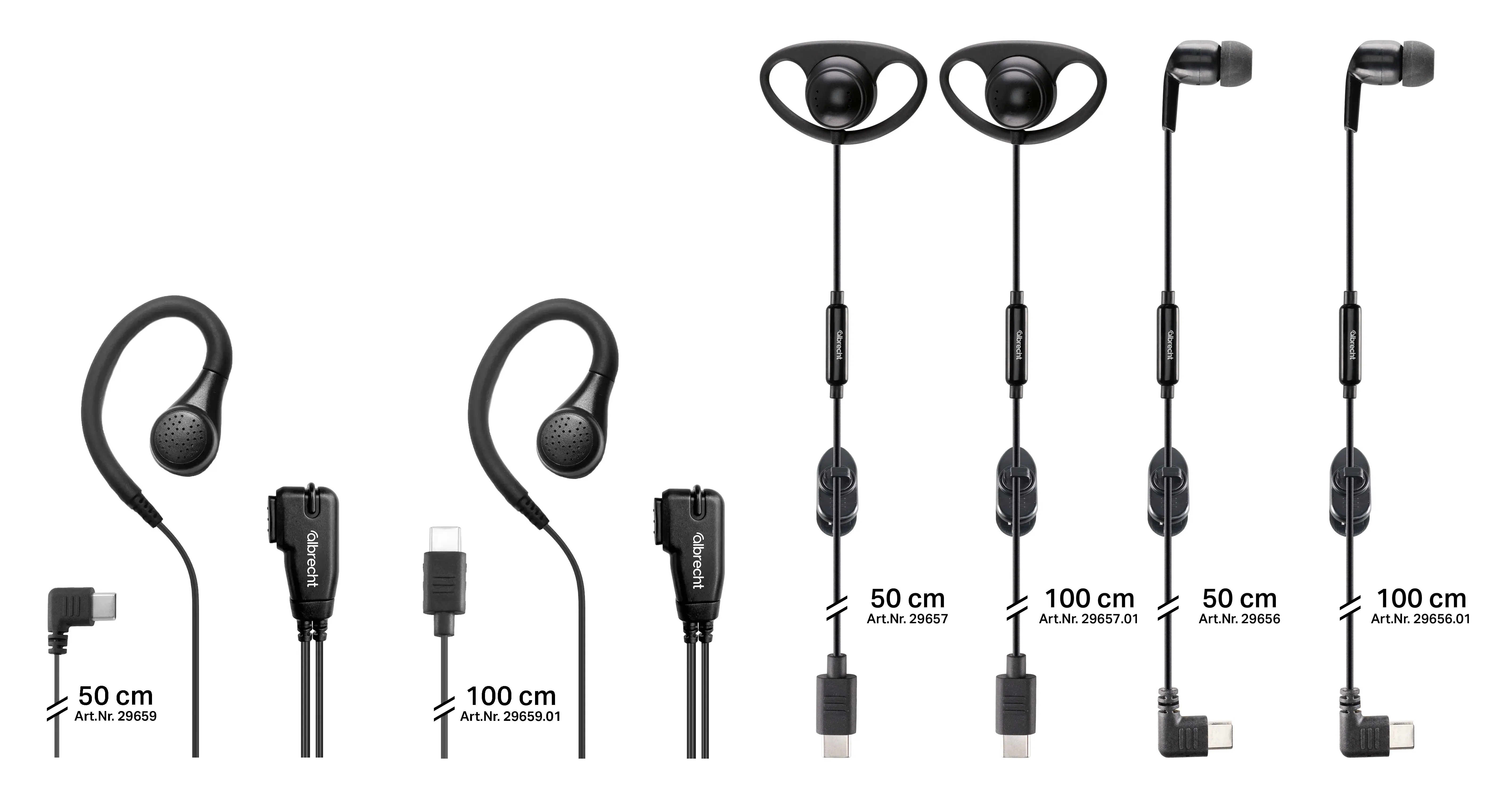 Lieferumfang: Ohrhörer Headset, 50cm Kabel mit USB-C Stecker, PTT-Mikrofon Taste